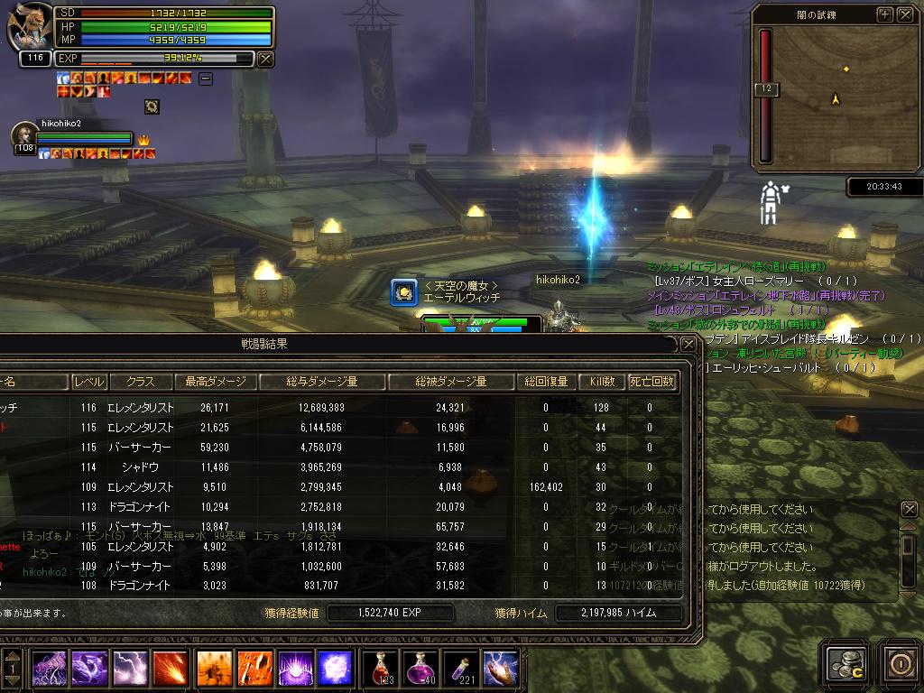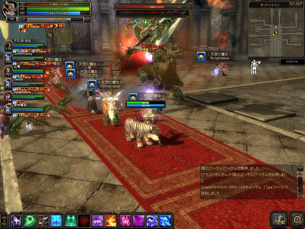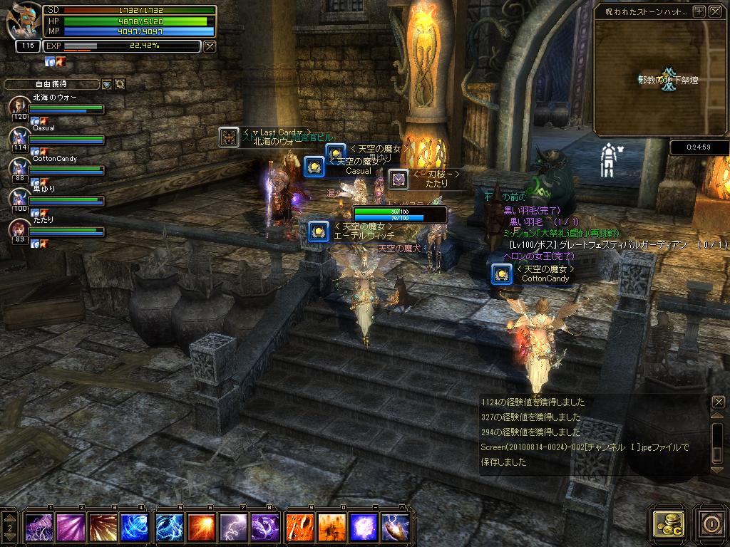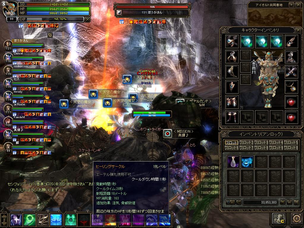 と、言うわけでどうにかこうにかリングが揃ったので イグリン2セット作成>< レシピ:ビーストリングx2、オニールリングx2、雪花のリングx2、フレームリングx2、祭壇のリングx2、手数料100mハイム これで若干普通火力にやっと参加できるかなーっと。 全能力+20(9+11)スキルダメ+90%(50+40)から 全能力+24(12+12)スキルダメ+100%(50+50)&ダメ2倍4% になったわけですが、そろそろLv115にしようかなぁうーん。 いあー長かった辛かったやばかったですw エーテル0なので攻撃はセイク・インクワ・デルビしかなくて 最後はカオスでフローズンで敵を固めつつひたすらデルビLv1 クールの空きはセイク主体でインクワを回してMPが0・・あ・・これは・・っと、思ったところで毒霧が晴れて助かりました><; 地下は今50%まで行ってますが地下リングは余ってるのでイグリンを先に作ろうかと思います^^ サブのマスターウィッチですがぬくぬくと成長中です♪ 今何パーセントですかー?っとGメンに聞かれたとき ふとよく見たら77.77%でしたw まぁ、ただそれだけなんですが。。 ココでとめるべきか悩みますねww って、いあいあみんなでモントクエいくので105になったてから止めますって。 |