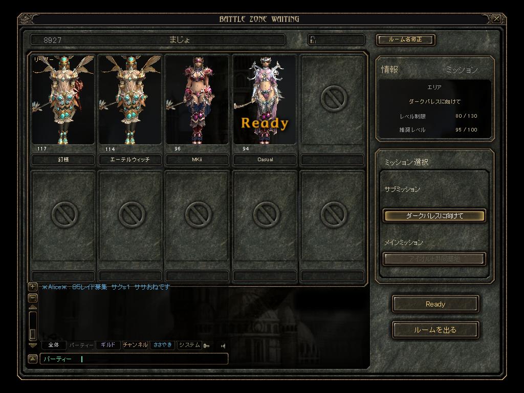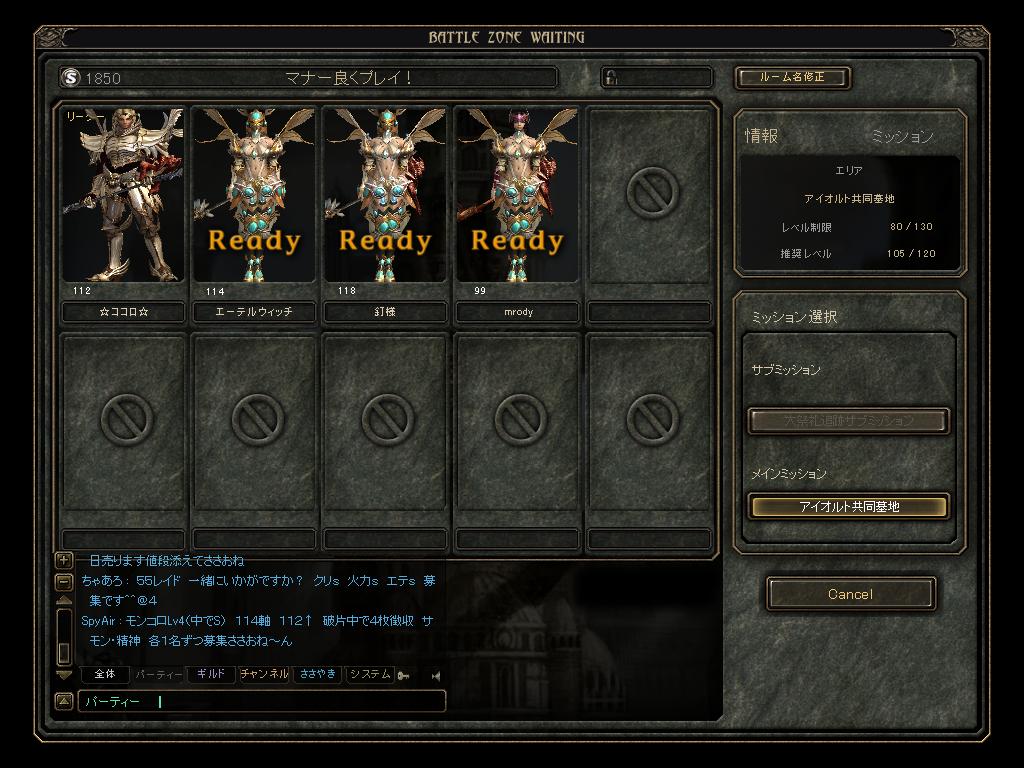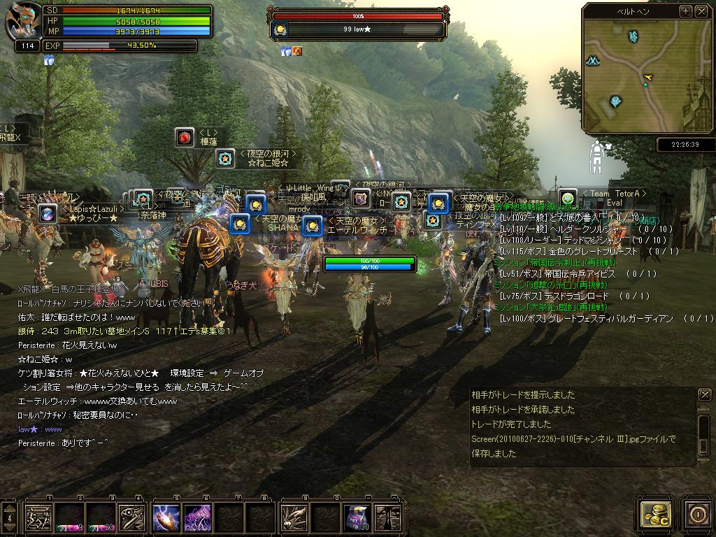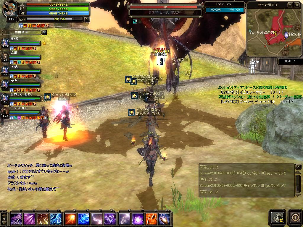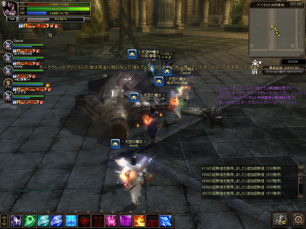 今SUN公式ブログの方にサイトアドレス(ブログはダメ)を渡すと リンクを張ってもらえるとのことでうだうだとサイトの構成なんて 練ってみたけども・・・MPが切れました。 これのデザインが出来上がってもはDWでサイトに起こさないと いけない訳で、あんまり時間さけないなぁ・・と。 GW中は追加EXPももらえるので作ってる暇があればinしたいw とりあえず、精神くださ~いww 詳細:http://sunonline.blogchu.jp/1351582 (ちなみに上で戦ってるメンバは こちら ) 続 mrody復活祭な形で森ACレイドどやらラッキーを探し回る日々なのですが ラッキーを探しに行ったときに夜空の銀河Gさんが先にラキ狩りしていまして 今回はあきらめようかとと思っていたら、PTにまぜくれました^^b |