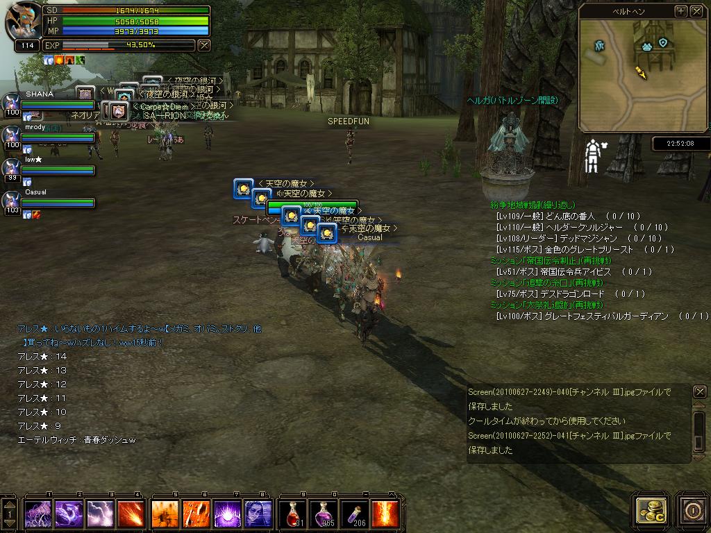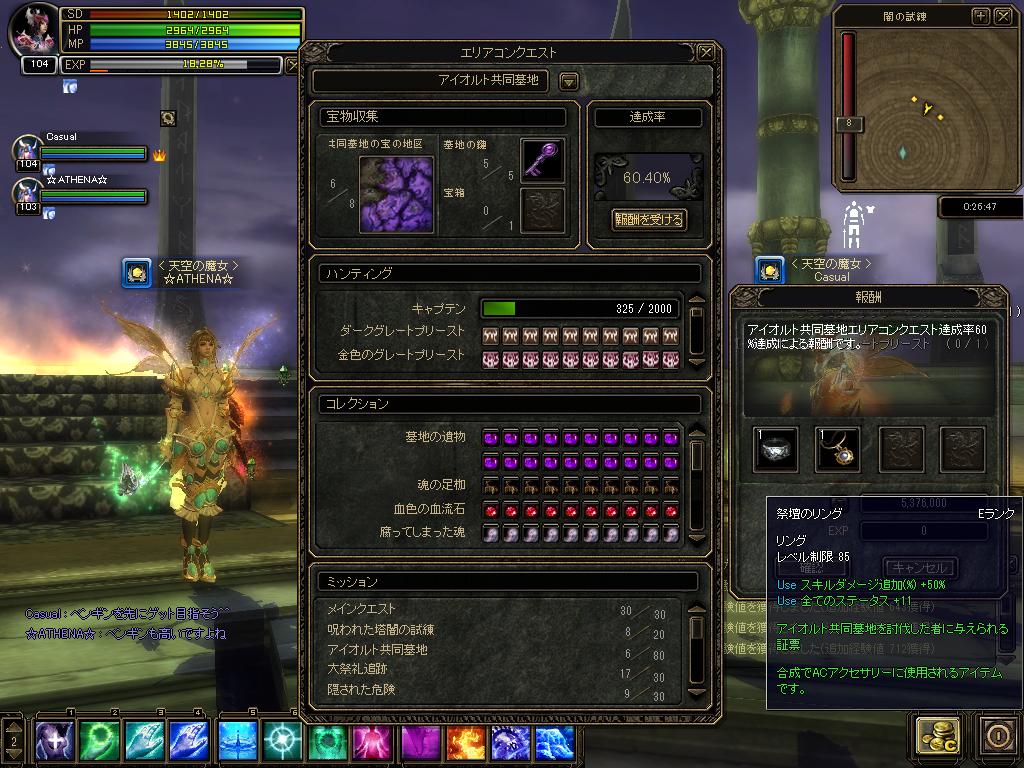 × [PR]上記の広告は3ヶ月以上新規記事投稿のないブログに表示されています。新しい記事を書く事で広告が消えます。 この前60行ったばかりなのになぜか気が付いたら70%に・・ 別段進んで竜AC頑張ってないんだけどなぁ・・。 まぁ、おそらく風試練ばっかり最近行っていた為キャプ数でみるみる上がった感じがしなくも無いですね。。 PR と、言うわけでGハンで墓メインに行ってきました><b 10分部屋は♪ナナ♪sのおかげで案外すんなりいけてよかったです^^ EXPもうまうまだったし、またみんなで行きたいですね。 いあーこっちはもうあとちょっとってところで放置してたので それほど辛い思いはしませんでした。 ここまでくると後は地下と雪原なのですがどっちも45%程度しか溜まってないのでちょっとすぐには無理かなぁって所です。まぁ、まったーり集めます。 前回竜が60%になってから猛烈な追い込みによりついに墓も60%です。 みんなで行った闇試練でGET! それから、どうにかこうにかLv104になりました>< 105にもうちょいでなれるのでそしたらみんなでモントクエ行きましょう。 105になっても私はしばらくさらにサブサブなバウ娘育てますのでまったりでw エーテルウィッチはACリングが全部ありイグリンを作れる状態だったのですが、イグリンを作ってしまうと墓リン+フレリン=90%ダメアップがイグリン一つになってしまいダメージが落ちてしまうので、しばらく我慢していました。 ・・・が!やっとサブがフレリンGETなのでイグリン+フレリンにやっと装備を変更できます^^ 本当はイグ+墓にしたかったのですが、エテ娘でさえ墓が先だったACがなぜかふと気づいたら竜が55%も溜まってまして不思議でしょうがないwなので先に竜をあげてみました。 22時よりベル3chで花火大会があったので行って来ました~♪ でも、どうしても花火の打ち上げモーションのあと花火が消えてほぼ見えない状態でしたTT 負荷対策などがされているのかもωとりあえずみんなに花火配布しましたw SSとるのに夢中で気づかなかったけどもどうやらグラフィックオプションで見えるようになるとかならないとか。。 人数が若干減ってくると見えるようにw スクリーンショットモードでパシャリ・・でもハートがなぜか横を向く・・・ と、言うわけで向きを変えて花火投げ。やっと正面向きでとれましたw だったので、行列やってみました。遅さの美学を使ってスローダッシュ。まぁ静止画ではわかりませんがw 後はのりで記念撮影です。その1 仮面をつけてさらに撮影その2w そして全員ヘルムなしで撮影その3。パシャリ♪ そして、会話の通りうちのGはなぜか黒髪がおおですねw あとは座って撮影その4 あとは夜空の銀河Gさんと駆けっこですwすごい長い列w それにしてもノリがいいギルドsで楽しかったです><b ちなみに >>去年の花火大会のSSはこちら エレメンタラ7 ドラゴンナイト1 で風試練いってきました^^ 今日はみんなイベントでのサブ育成から戻ってきてたりで勢ぞろいでした><b と、いうわけでみんなでがやがやそろってSSとってみました。 みなさんのおかげで、今日も楽しくプレイできましたw そろそろギルド一周年イベントも終了させてギルドメンバ募集を再開しますのでぜひ、うちのギルドへ~^^ まぁ、精霊石を現在運営はぽんぽん配布しているような状態でして こんごエリ武器がメジャーになってしまうんだろうなぁと思いつつ 500mを切っていたのでうっかり購入してしまった。。 紫 知力>精神 エクスタティックデスワンド+12 物理攻撃力:151-184 / 魔法攻撃力:234-262 と、こんな感じですね。ちなみにハイムはほぼ全財産だったのでしばらくは貧困生活ですww と、言うわけでエレハンによるモンコロ行って来ました^^ これといって激戦になることもなく(まぁ反射で死んだりもしましたがw 普通にクリアーっと、精霊石もでず残念>< そして、画像のほうは高速移動による残像・・・と見せかけた四倍歩行ですww やっぱり、集合してみると迫力があるというか魔術ギルドって感じがしますね。 とくにこれといって理由はなくなんとなく試練前に集まってみただけなのですがなかなか楽しかったです。 このあとPT組んでるメンバでエレハン行って来たんですがSSとるの忘れてたorz http://blog.cnobi.jp/v1/blog/user/5f3b00d2b8657125dfc018ee0b8acf63/1275821717 と、言うわけでエレハンで45レイドをボッコボコにしてきました。 いあー苦戦ですよー。dotがかぶのでww まぁあとで、精神をよんだししましたが><; タイトル通りなのですが、基地メインに四人で特攻! 大丈夫だろうかと思っていた10分部屋も死なないでどうにか完了><b と、いってもmrodyだけはどうしても気を抜くと若さ(ヘイト)ゆえに集中砲火にあってしまうのでなんどか倒れてしまったのはしょうがないですねぇωなので次の部屋でハンマーは渡しておきました。 あ、あとたまたまとれたのがこのSSですけどやっぱり羽いいですよね~なんだか天使みたいで。こんどSSとるときに釘様sに手伝ってもらって羽つきSSとろうっと。 上の部屋
